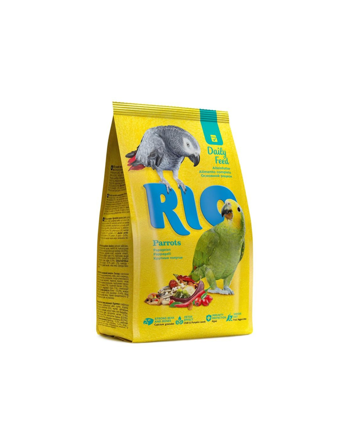 - La dosis diaria del alimento RIO para Loros grandes es de 40-50 g.