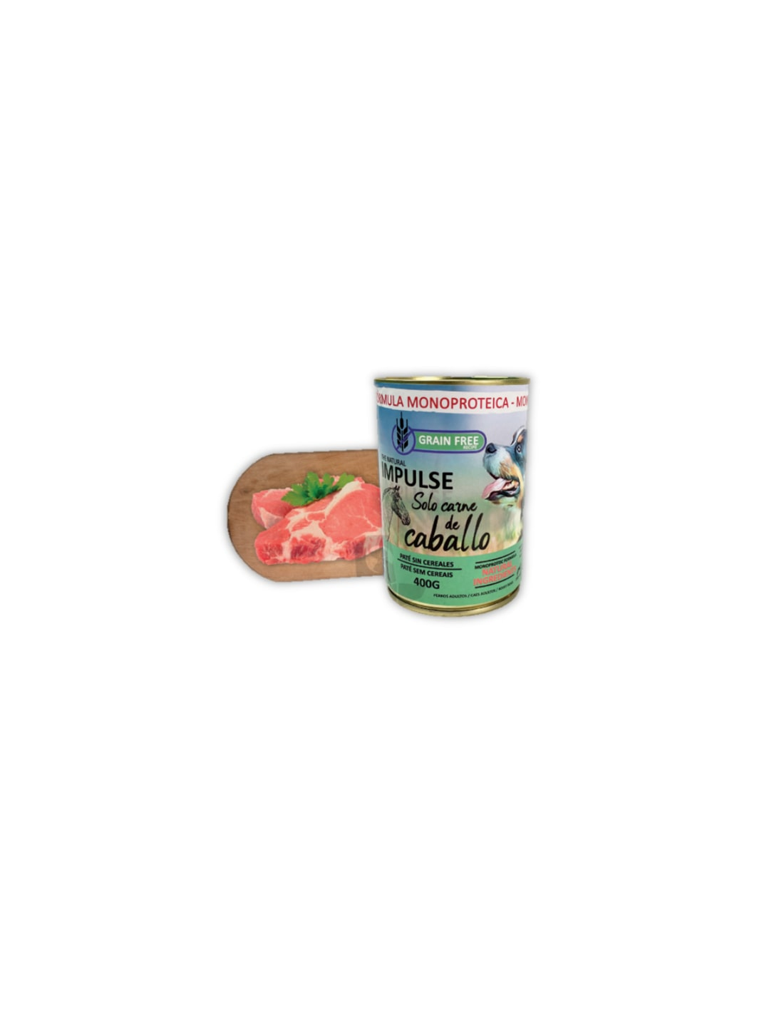 La lata de comida húmeda impulse sabor caballo destaca por su receta rica y deliciosa, elaborada con un 97% de carne de caballo de alta calidad. Esta fórmula no solo proporciona una fuente de proteinas excepcionalmente nutritiva, sino que también está diseñada para perros con necesidades dietéticas específicas ya que es monoprotéica e ideal para aquellos con alergias o sensibilidades alimentarias.