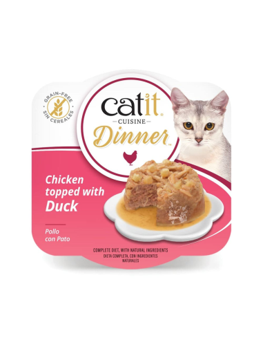 Alimento húmedo completo de doble capa a base de pollo elaborado con los mejores ingredientes frescos. Catit Dinner es un alimento húmedo de doble capa, elaborado con ingredientes frescos y servido en una deliciosa salsa. Este alimento para gatos de primera calidad es natural, rico en proteínas y sin cereales, con vitaminas y minerales añadidos para una nutrición perfectamente equilibrada. Tan saludable como si fuera casero, Catit Dinner de Pollo ha sido cuidadosamente equilibrado para crear el complemento hidratante ideal para la dieta diaria de pienso de su gato. Les proporciona todo lo que necesitan para mantenerse felices y sanos.