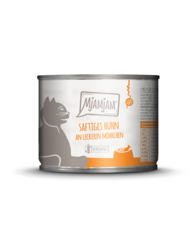 Con MjAMjAM obtendrá comida para gatos elaborada con ingredientes de alta calidad, la mayoría de los cuales proceden de granjas regionales. La comida no contiene cereales añadidos ni azúcar. Además de abundante carne, contiene otros ingredientes animales y vegetales que sirven como proveedores de valiosas sustancias vitales.