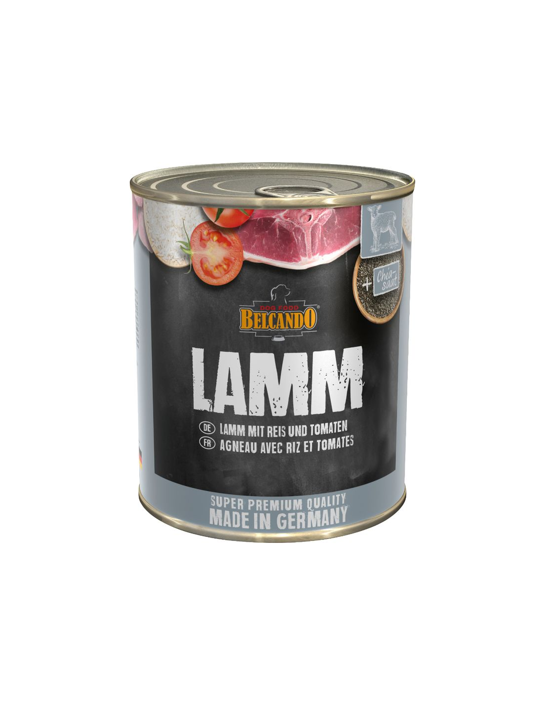 Carne, panza, hígado, corazón y pulmón de cordero (63 %), caldo de carne de cordero (26,5 %), arroz cocido (4 %), tomates (4 %), semillas de chía (1 %), minerales (1 %), aceite de cardo (0,5 %).