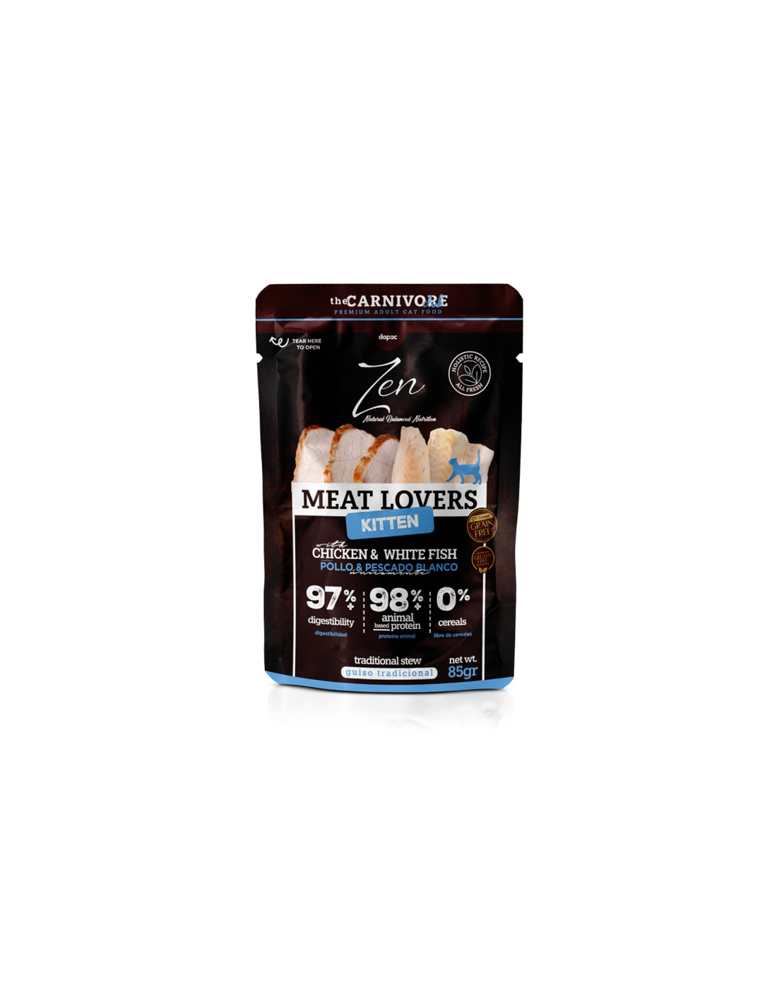 - 97% proteína animal para apoyar el desarrollo y la masa magra.