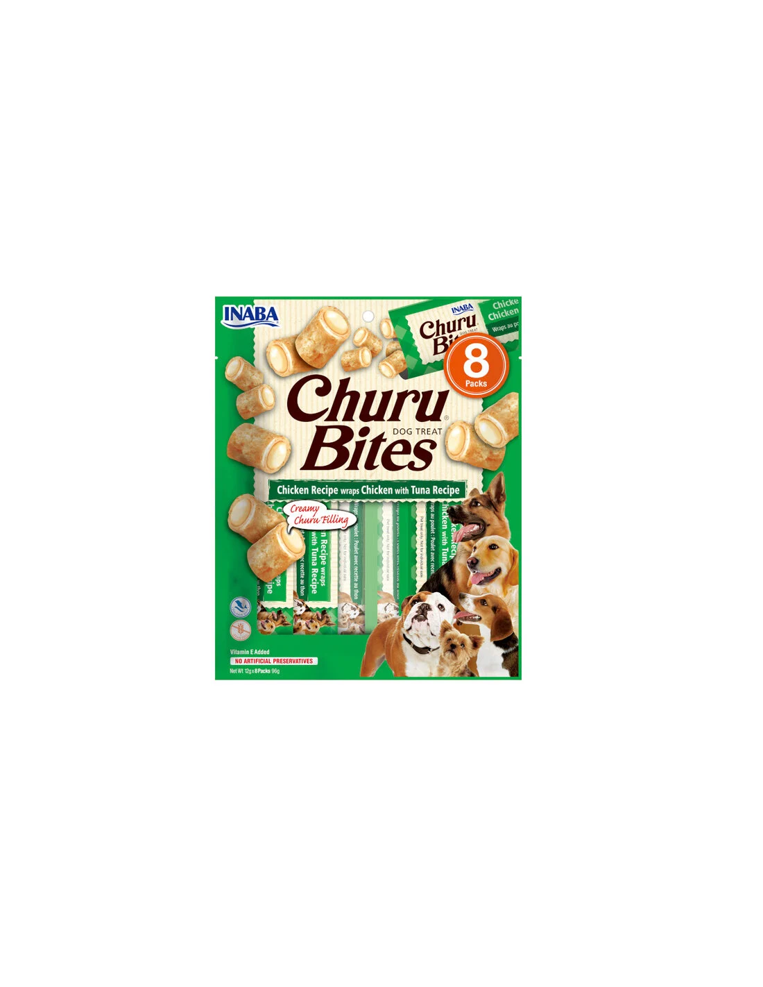 Contienen vitamina E, minerales y antioxidantes que cuidan la piel, el pelaje y contribuyen con un sistema inmunitario fuerte para que tu perro conserve una vida llena de vitalidad y saludable. El pollo y atún aportan energía para que tu mascota amigo se mantenga activa y con muchas ganas de jugar. Esta receta de Churu está elaborada con ingredientes de alta calidad para brindar unos bocaditos rellenos fáciles de digerir, saludables y de gran sabor.