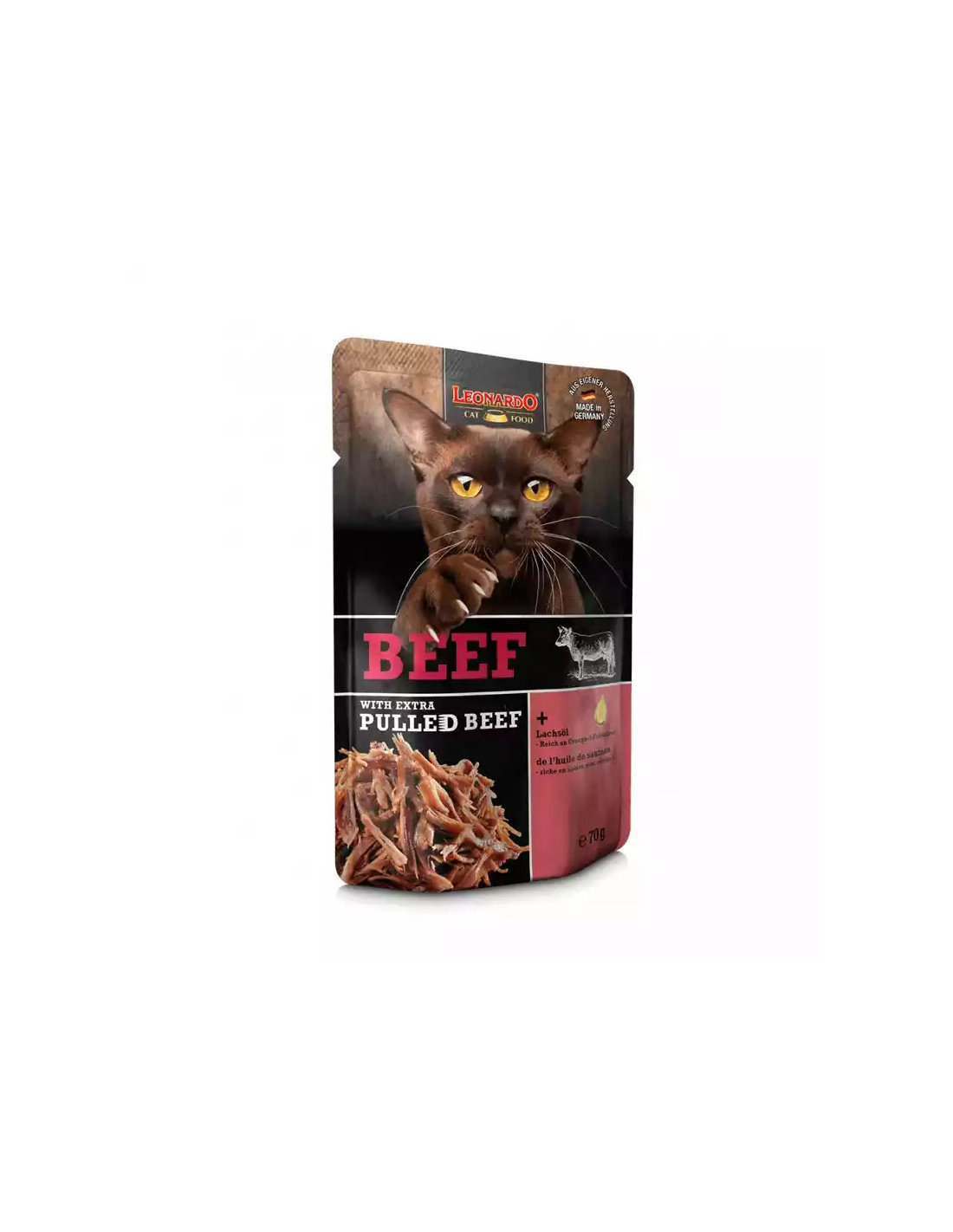 Es una línea de alimentos húmedos compuesta por carnes de primera calidad, con tiras de carne de res que los gatos aprecian con placer.