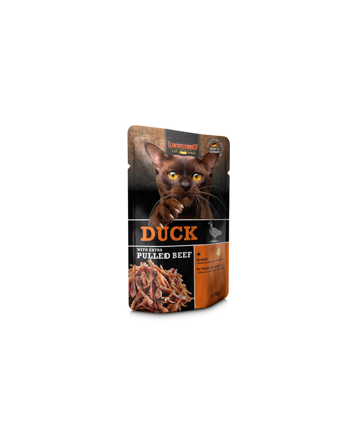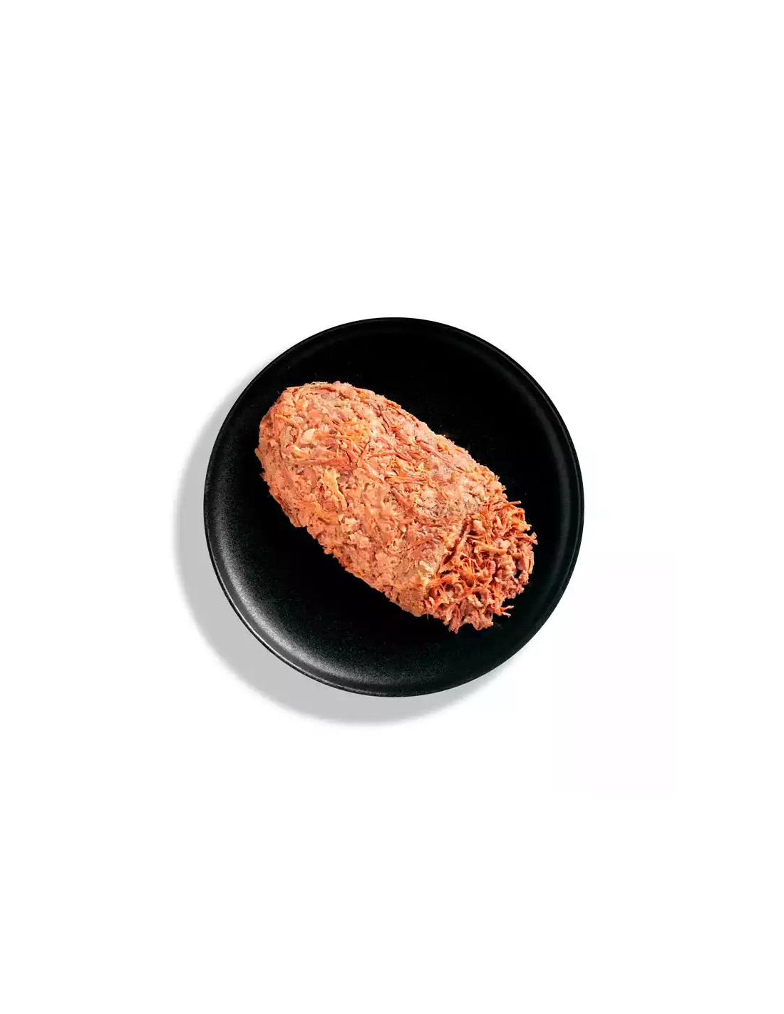 Composición: carne, corazón, hígado y mollejas de pato (34,5 %); caldo de carne (34,3 %); ternera desmenuzada (14 %); hígado de pollo (8,5 %); pulmón de ternera (7,5 %); cáscaras de huevo, secas (0,5 %); minerales (0,5 %); aceite de salmón (0,2 %).